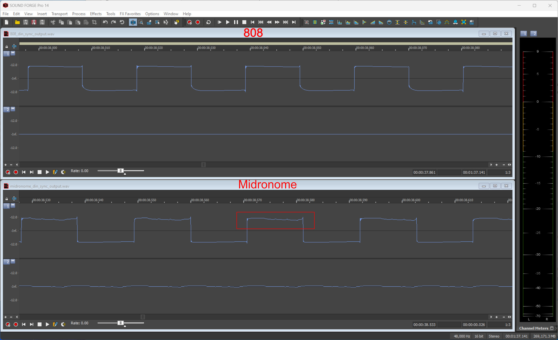 You can also see how the Midronome's clock follows tightly the MIDI while the clock coming out of the Arturia is a bit off (and the offset changes - not great