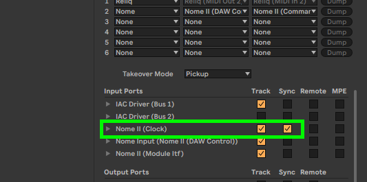 Hey there. I'm just a dumbdumb trying to figure out how to correctly set this up so that Nome is the master clock and Live follows its clock. A lot of the documentation seems to be geared for people wanting to do it the other way around, which seems to defeat the purpose. It works fine bidirectionally but I'm still using Live's clock. Can some kind person give me a hint on what settings are needed both in Live and the Nome? I have it setup correctly as a control surface. When I config Ableton to follow an external clock it appears to be receiving it, but doesn't receive the start message. I'm so confused so please be kind!!