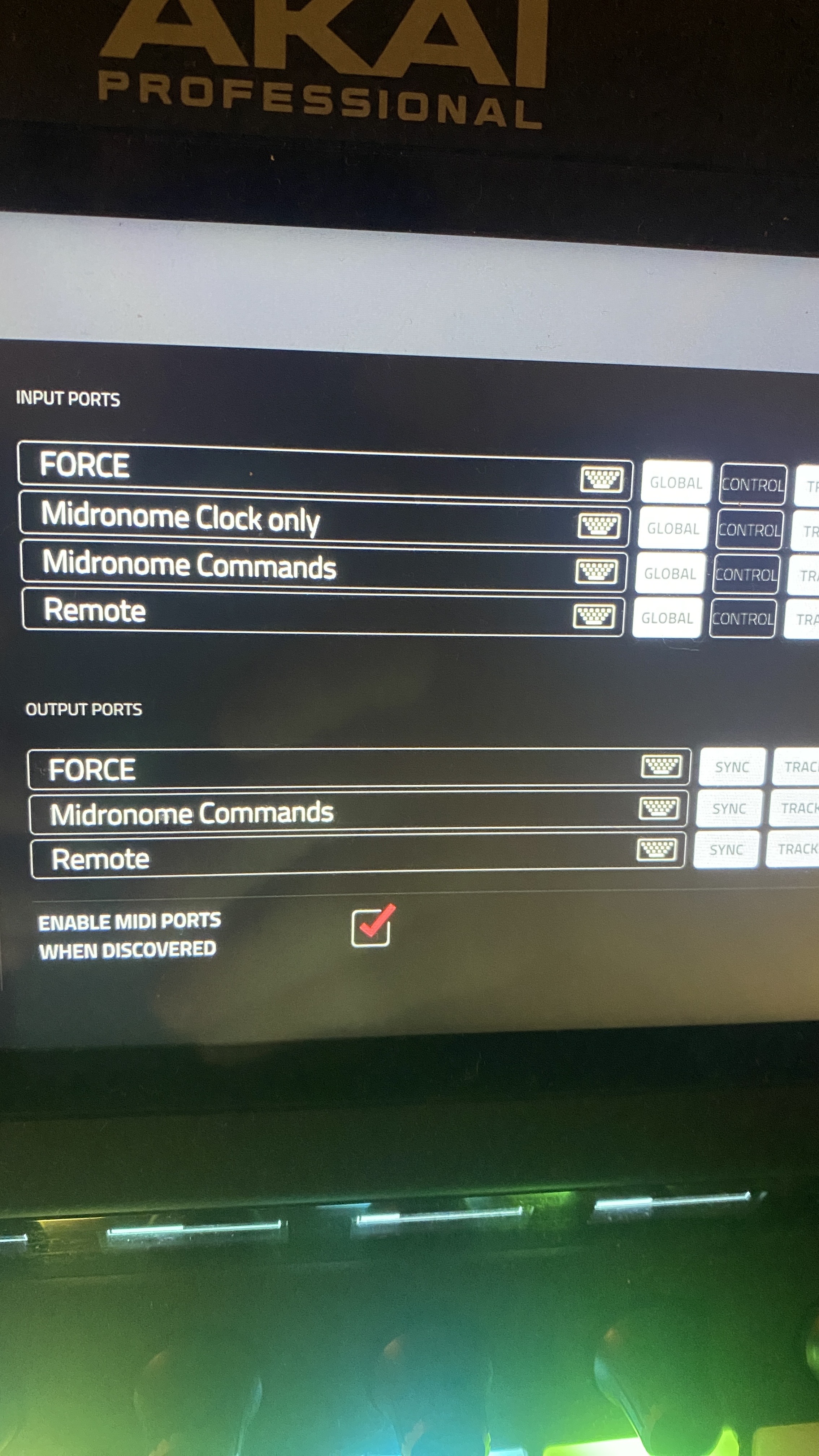 I’ve tried different combinations of enabling and disabling the midi inputs on the force but it doesn’t seem to make a difference.