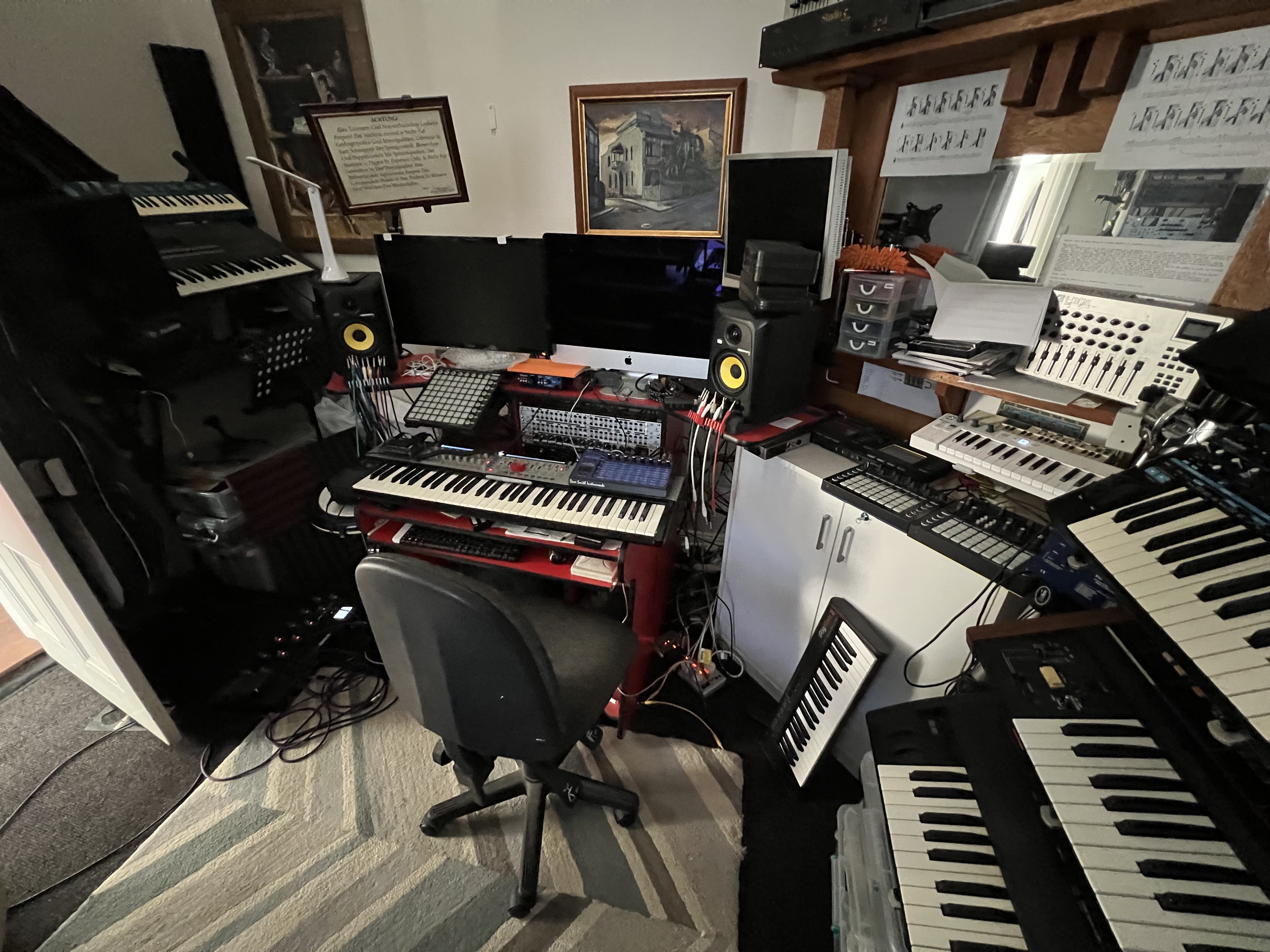 At the moment, all MIDI is centralised around a Bome Box (very powerful piece of gear but super steep learning curve). There's a powered USB hub plugged into the Bome Box into which I plug all the controllers with USB MIDI (Novation Sl mk2 and mk3, Arturia Beatstep etc) as well as an iConnectivity mioXL (10 DIN ports plus 10 USB host ports) and an iConnectMIDI4+ (4 DIN ports and 8 USB host ports). These are used to connect the multitimbral machines that require a full MIDI port with all 16 MIDI channels. The monotimbral machines that require only one MIDI channel are plugged into an ancient Opcode Studio 5LX that acts as a 15 outs MIDI patch bay as well as doing some filtering and routing, and is plugged into the DIN port of the Bome Box.